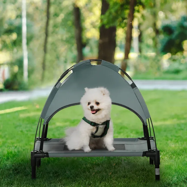Elevated Dog Bed with Removable Canopy, Outdoor Dog Cot with UV Protection Canopy Shade, 24 inch Pet Bed for Camping, Gray