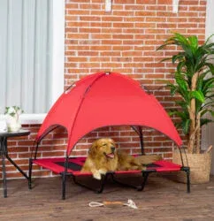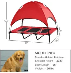 48″ x 36″ Elevated Portable Dog Cot Cooling Pet Bed with UV Protection Canopy Shade, Red
