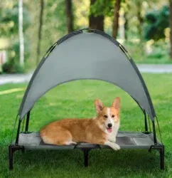 Elevated Dog Bed with Removable Canopy, Outdoor Dog Cot with UV Protection Canopy Shade, 36 inch Large Pet Bed for Camping, Gray
