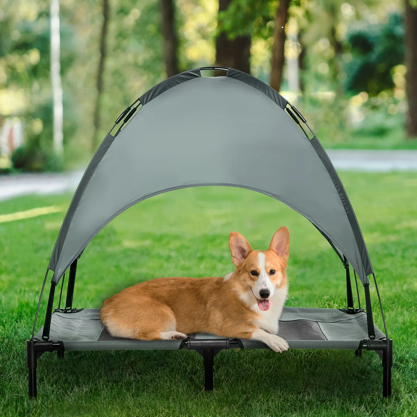Elevated Dog Bed with Removable Canopy, Outdoor Dog Cot with UV Protection Canopy Shade, 36 inch Large Pet Bed for Camping, Gray