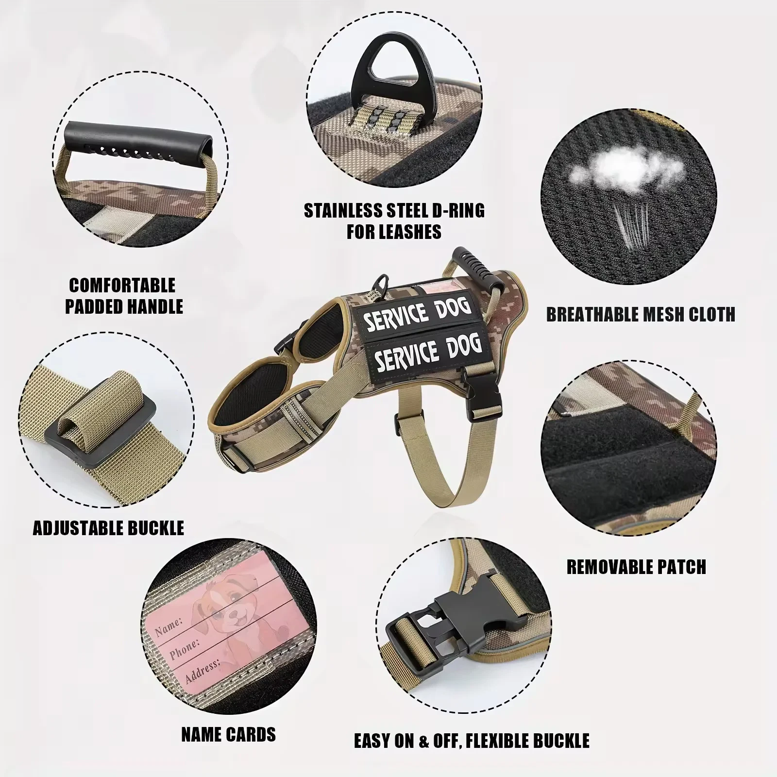 Tactical Service Dog Harness With Handle, No-Pull Adjustable Reflective Pet Vest Harness For Easy Walking And Training